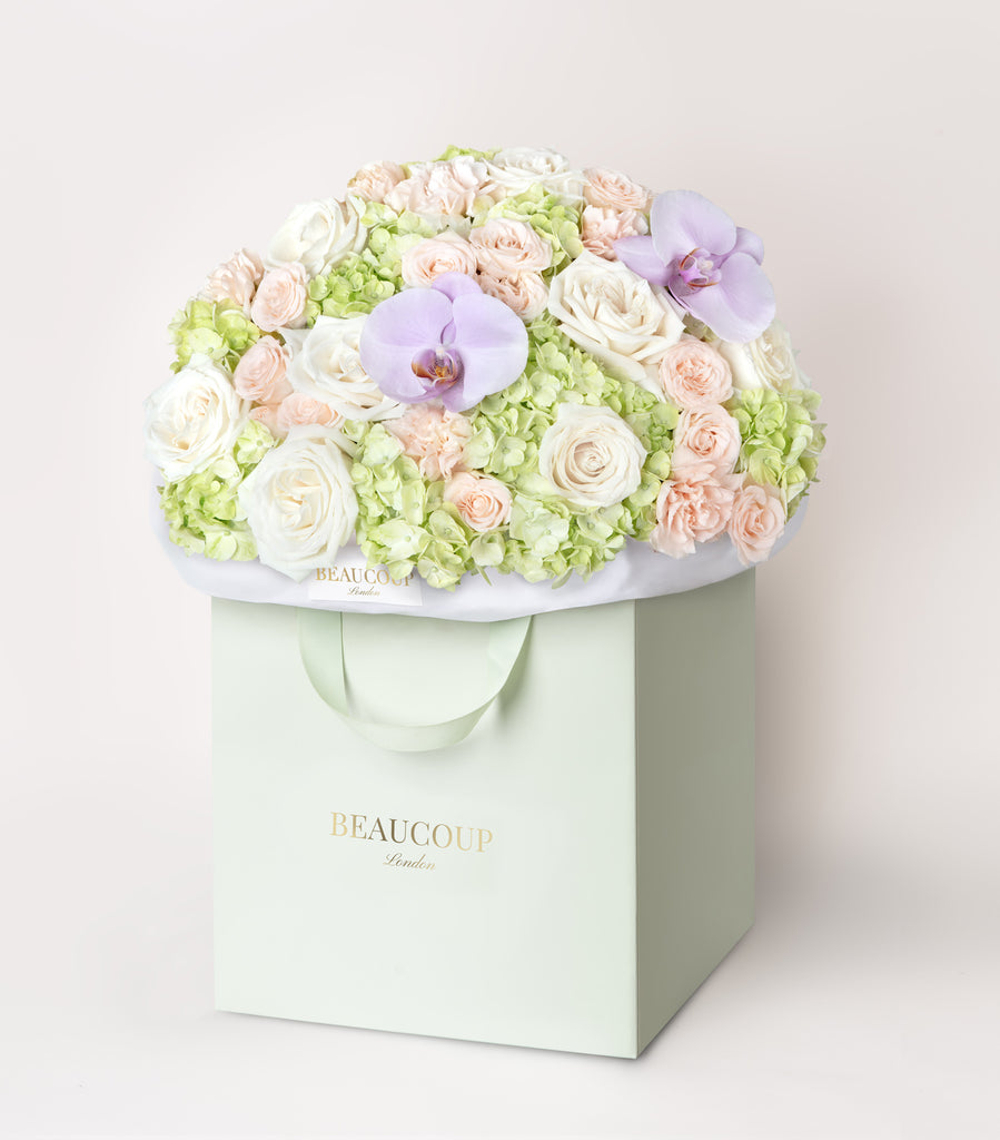 From our studio in the heart of London’s Chelsea, we comprise a team of expert florists devoted to creating couture arrangements using only the finest stems and seasonal blooms selected by us from our trusted growers. Discover our luxurious bouquets, hand-tied with hot-stamped satin ribbon, wrapped in delicate crepe paper and delivered in our signature pistachio green bags, perfect for gifting.